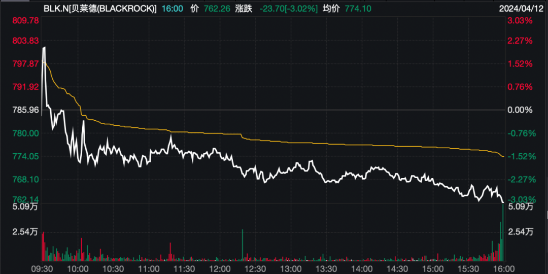 当天,贝莱德股价开盘后一度涨约2%,但随后持续回落,收盘跌超3%。